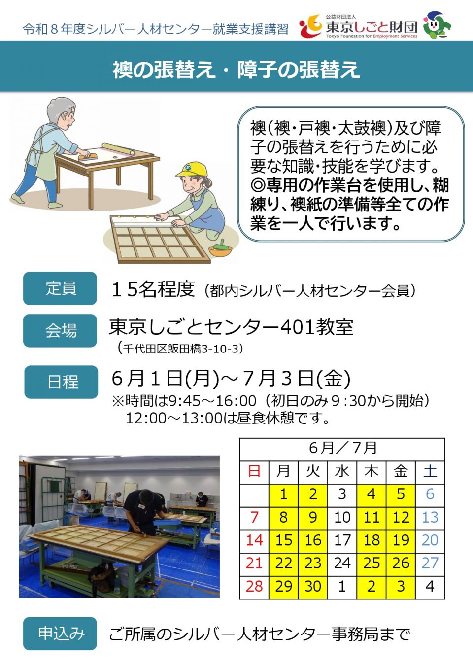 東京しごと財団主催「襖の張替え・障子の張替え」参加者募集!