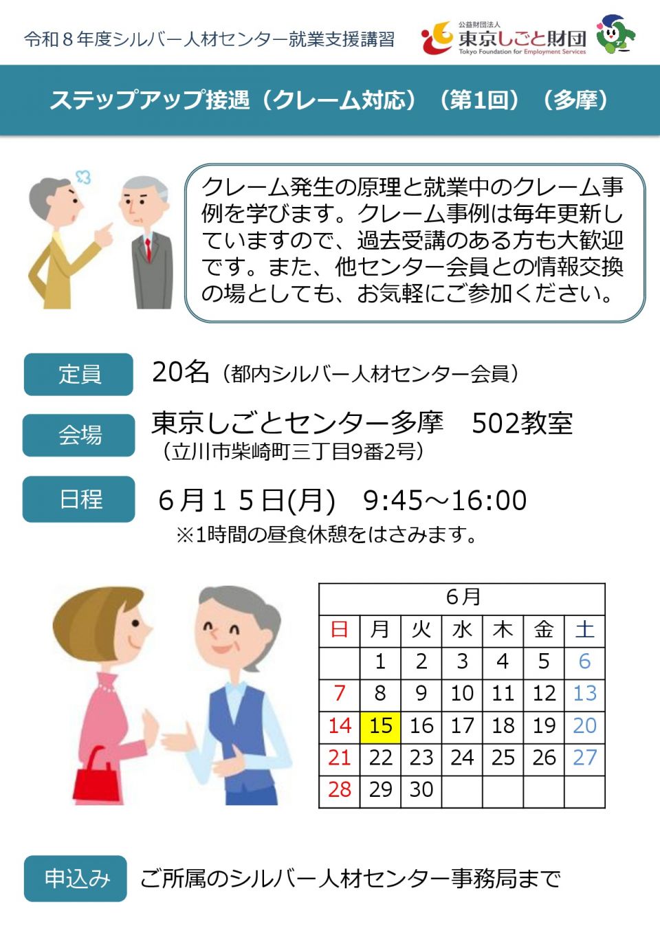 東京しごと財団主催「ステップアップ接遇(クレーム対応)(第1回)」参加者募集!