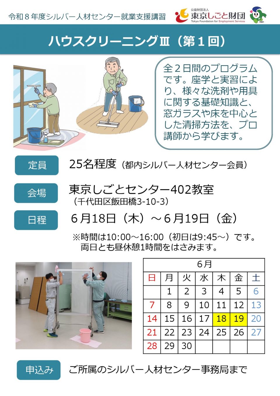東京しごと財団主催 「ハウスクリーニングⅡ」 参加者募集!