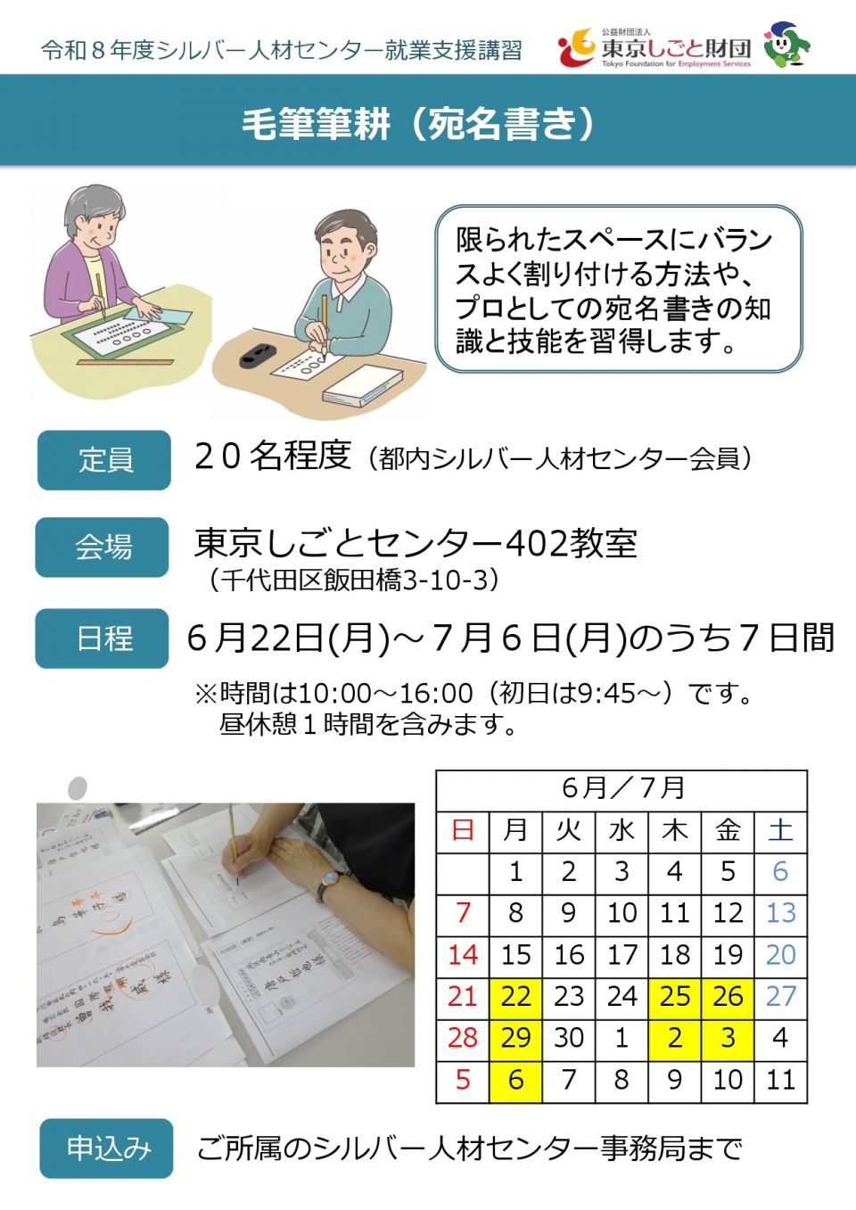 東京しごと財団主催 「毛筆筆耕(宛名書き)」 参加者募集!