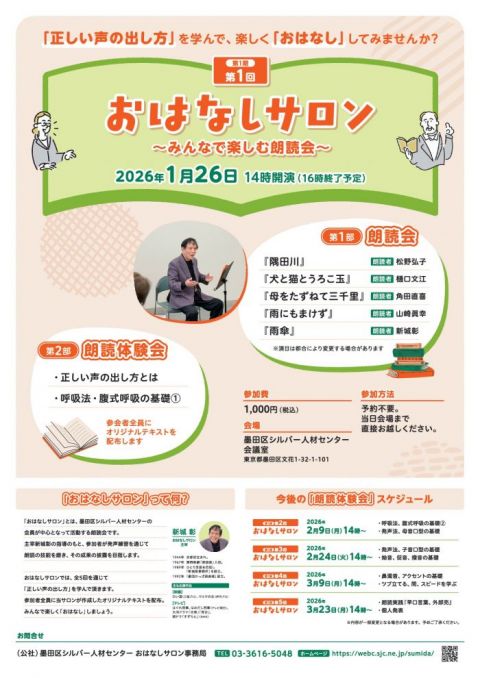「おはなしサロン」は、朗読、読み聞かせを中心とした発声練習の教室です。