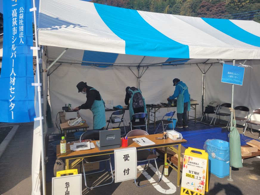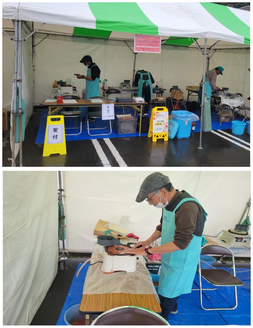 イベント ◆ 活動報告 令和7年度高萩市産業祭で出店いたしました 令和7年11月16日(日)に第44回高萩市産業祭で昨年度に引き続き包丁研ぎを実施しました。1日中晴天で天気に恵まれ多くの方が産業祭に来場されていました。シルバーの包丁研ぎを多数の方にご利用いただき、誠にありがとうございました。次回出店した際にも、皆様のご利用お待ちしております。 令和7年総合福祉センターまつりで出店いたしました 令和7年10月4日(土)に総合福祉センターまつりで包丁研ぎを実施しました。総合福祉センターまつりでの参加は初めてでありましたが、たくさんのお客様にご利用いただき、また喜んでいただく事ができ、シルバー人材センターPRに繋げることができました。ありがとうございました。次回は、昨年に引き続き11月16日(日)の高萩市産業祭で包丁研ぎを実施しますので、皆様のご来場をお待ちしております。 令和6年度高萩市産業祭で出店いたしました 令和6年11月17日(日)に第43回高萩市産業祭で包丁研ぎを実施しました。高萩市産業祭に出店するのは今年が初めてでした。会員の皆様も普段から自宅の包丁を研磨しており、その技術を生かし1本1本丁寧に仕上げました。当日はたくさんのお客様にご利用いただき、ありがとうございました。
