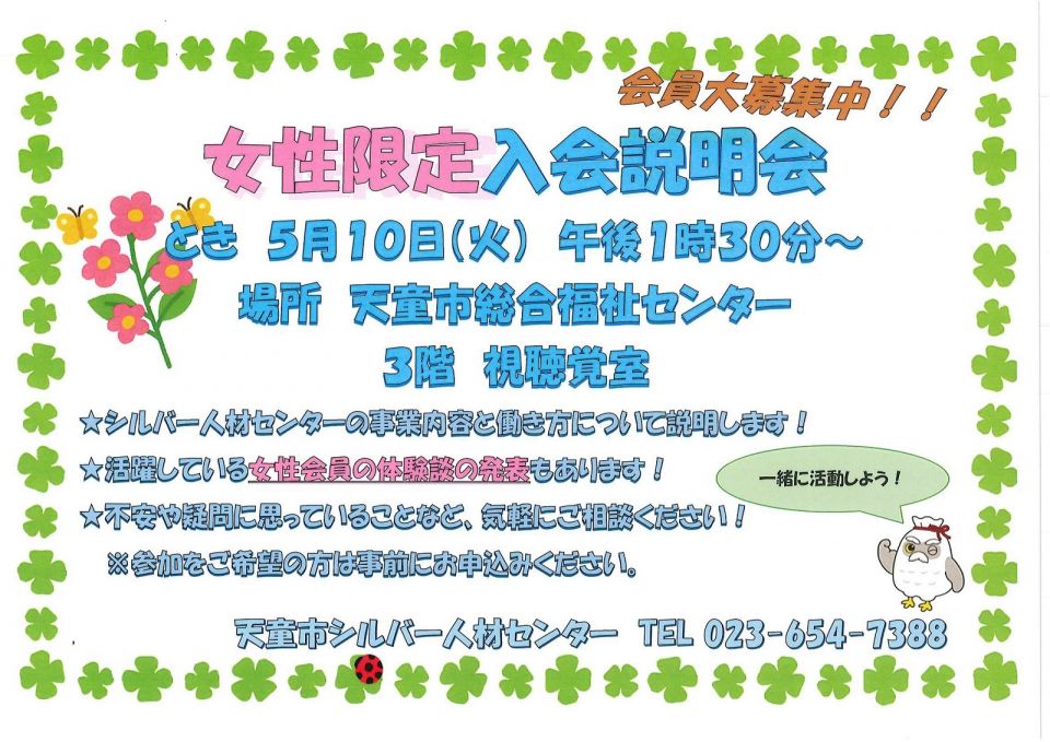 説明会に参加いただき、ぜひ天童市シルバー人材センターに入会してください。