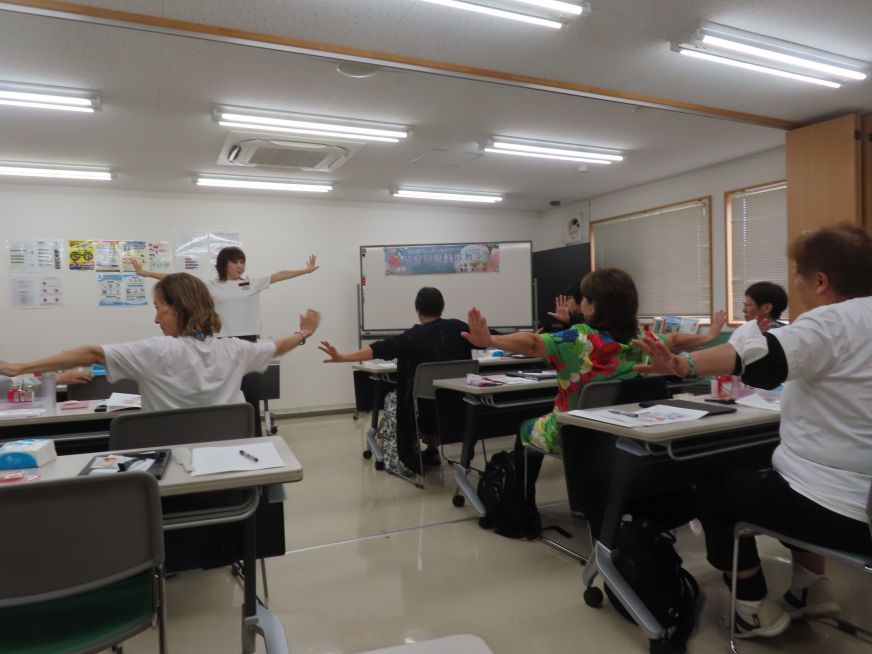お化粧や身だしなみの簡単な動作で腕の筋肉を使っており、さらに外出意欲、社会参加につながる健康長寿の延伸につながるということを教えていただきました。眉の描き方一つをとっても顔の印象が変わり、ファンデーションのつけ方、頭皮マッサージ、唾液腺マッサージを実際に一緒にを行い、参加された皆さんの表情がどんどん活き活きときれいに変わっていく様子は、見ていてうれしかったです。