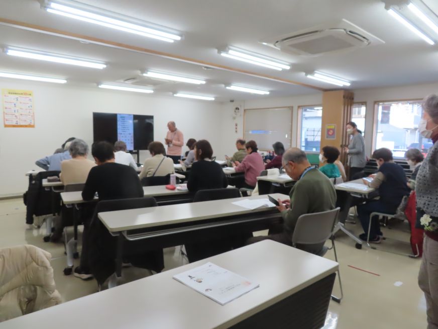 12月4日(木曜日)午後2時から「~認知症について学ぼう~」を開催しました。会員は13名が参加し、講師は戸田市地域包括支援センターの今井様、小山様から認知症の症状、関わり方などに学びました。後半は聴力体験を行い、約1時間30分の内容でございましたが、大変参考になりました。今後もシルバー会員向けの講習会を開催してまいりますので、ぜひご参加くださいますようお願い申し上げます。