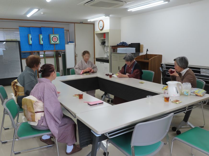 今回参加してくださったのは、令和7年秋の着物着付け教室にご参加いただいた方々でした。おさらい会の後は、着物を着てお茶会を開催しました。お茶会と言っても、紅茶とお菓子をいただくだけの簡単なものでしたが「着物を着て」と言うだけでいつもとは違う気分になります。今回の参加者は一番最近の教室の方々でしたが、「すでに忘れてしまっている」という声も聞こえてきました。やはり、普通に生活をしていると着物を着る機会はあまりないですよね!今回参加して頂いて、着付けを思い出していただけましたでしょうか?皆さんが着付けを忘れてしまわないように、これからもおさらい会や、お楽しみ会などの企画を発信していきますので、お楽しみに!この日参加されました皆様、大変お疲れさまでした。