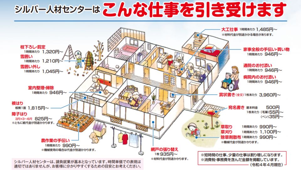 ご利用の料金について ◆ご利用料金のご案内 料金目安表 下図の料金はあくまでも目安となっています。他にもお引き受けできる仕事がございます。 ご不明な点ございましたら、十日町地域シルバー人材センターまで連絡お願いします。 職群別単価目安表