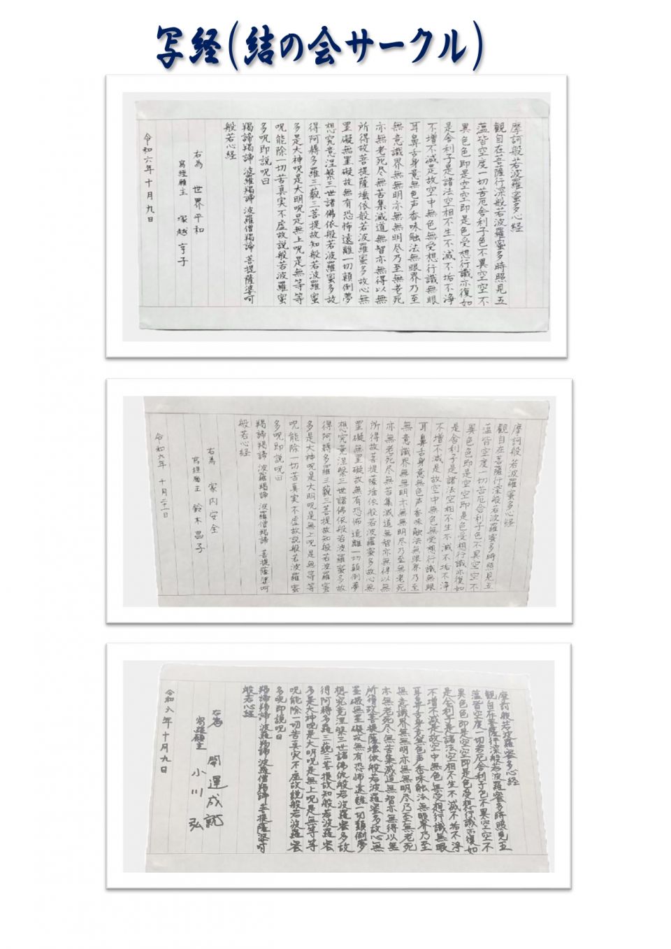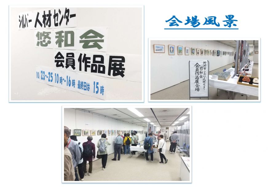 会員作品展 ★会員作品展 2024年10月23日~10月25日 会員の皆様に出展いただいた作品を掲載しております。 下スクロールで各作品を閲覧できます♪ 当日の様子 10月23日から25日で恒例の会員作品展を開催。写真、絵画、色鉛筆画、書、写経、手工芸品など、会員自慢の作品が展示されました。 出展者は66名、出展作品は115作品、来場者は581人と過去最多の来場者が会員作品をご覧になられました。 写真(カメラサークル)① 写真(カメラサークル)② 写真(カメラサークル)③ 色鉛筆① 色鉛筆② 色鉛筆③ 色鉛筆④ 絵画① 絵画② 絵画③ 絵画④ 写経① 写経② 書① 書② その他① その他② その他③ その他④ その他⑤