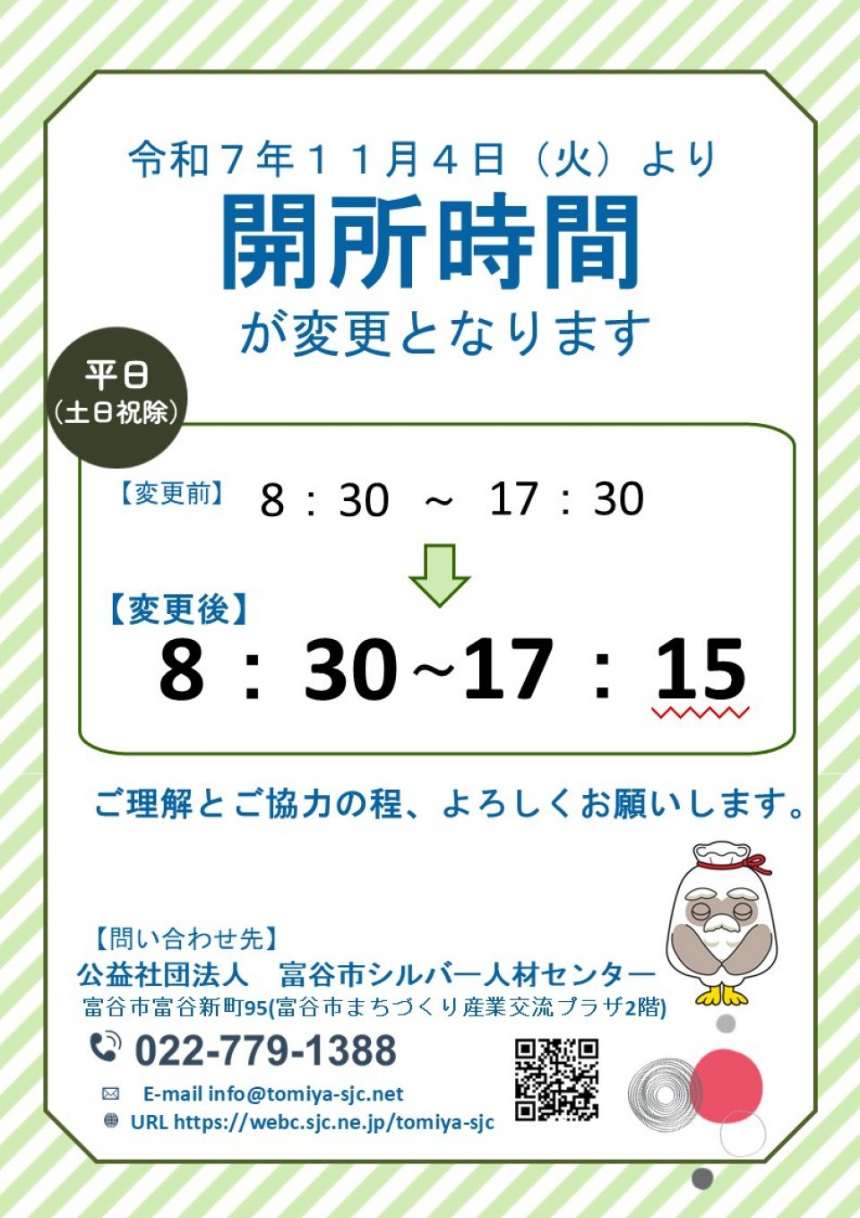 開所時間が変更となります