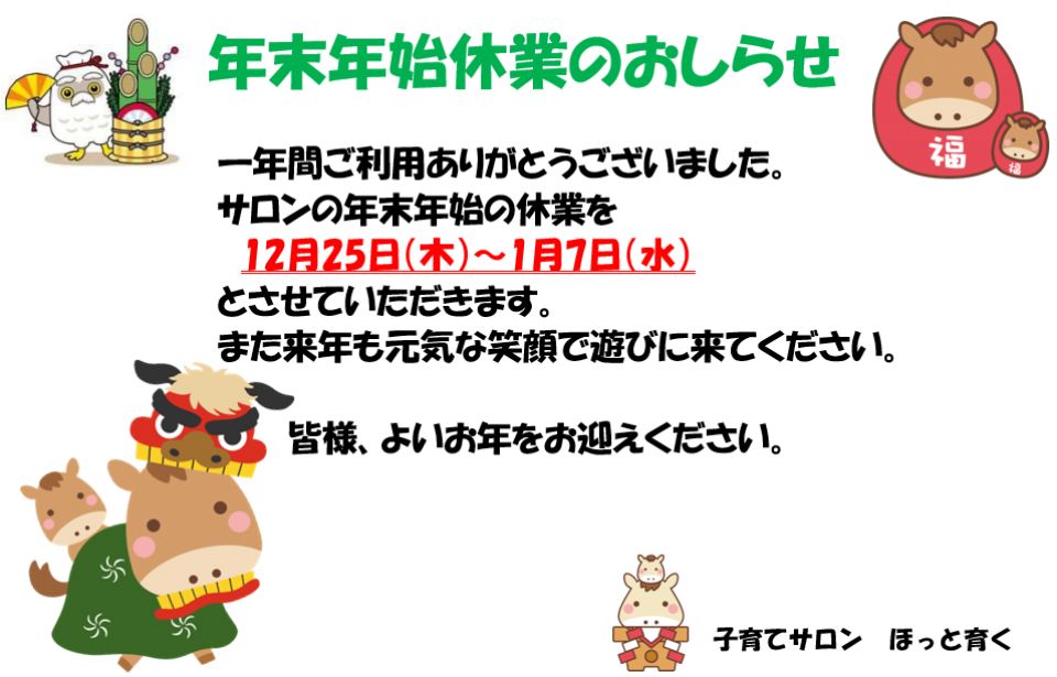 子育てサロンほっと育く 年末年始休業のお知らせ