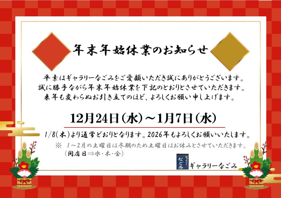 「ギャラリーなごみ」年末年始休業のお知らせ