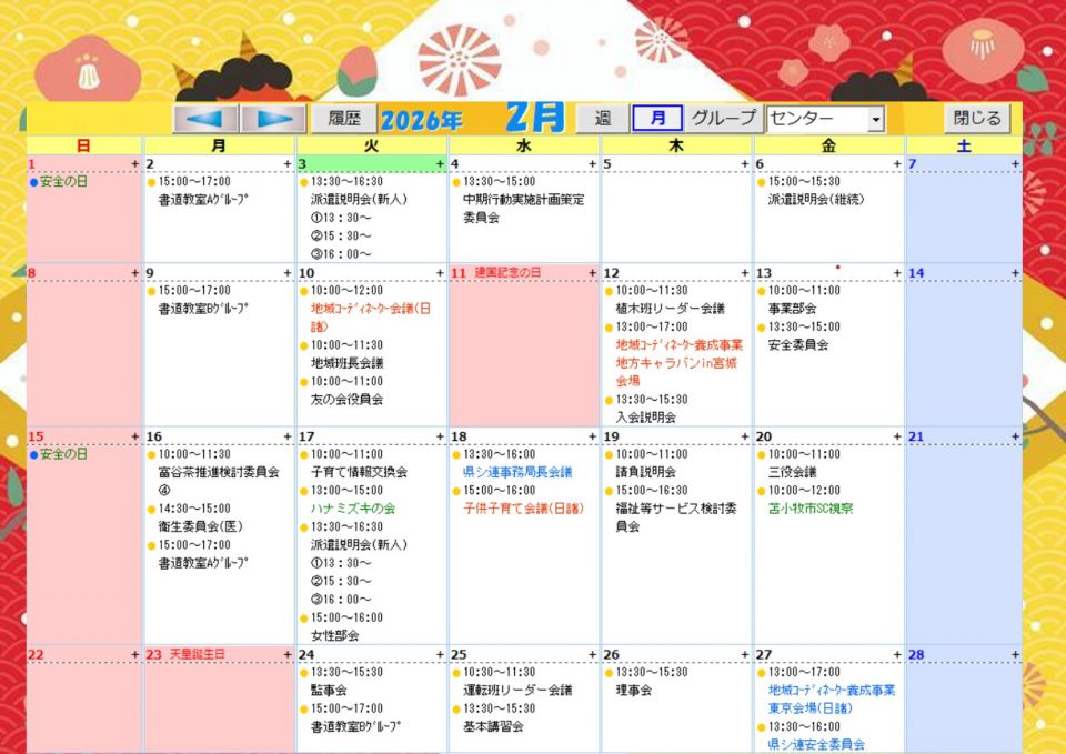 2月のセンターの主な行事予定