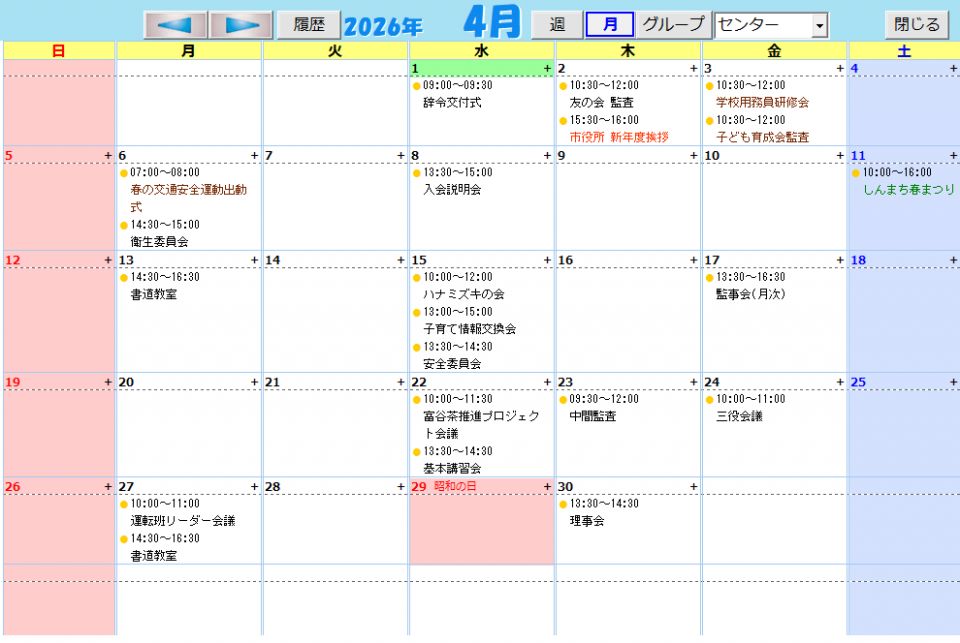 4月のセンター内主な行事予定