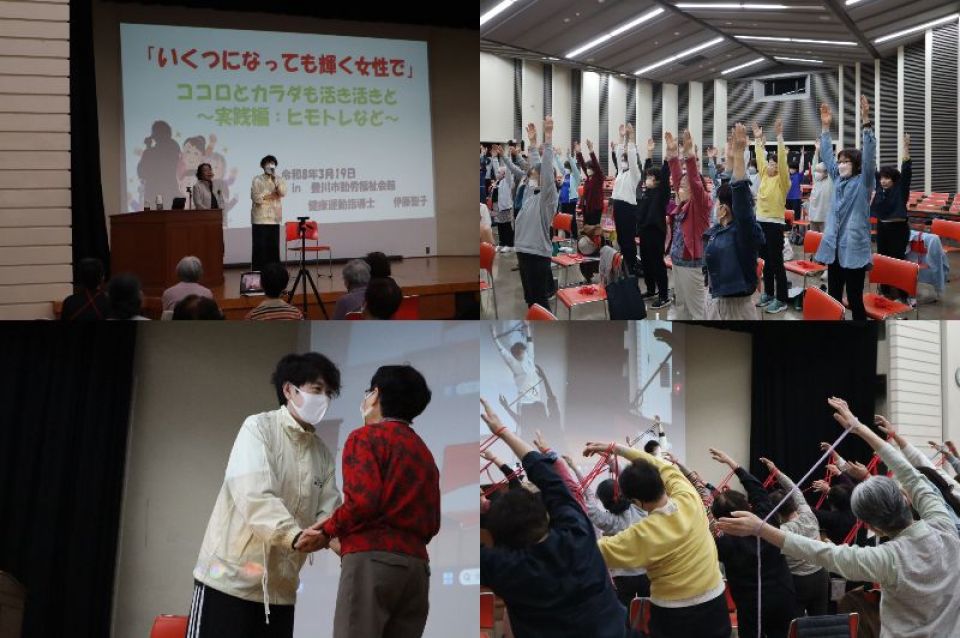 健康運動指導士の伊藤聖子様を講師にお招きして、ひもをからだに巻くだけで、無自覚な偏りや、癖を緩和し、バランスを整えるトレーニングを行っていただきました。