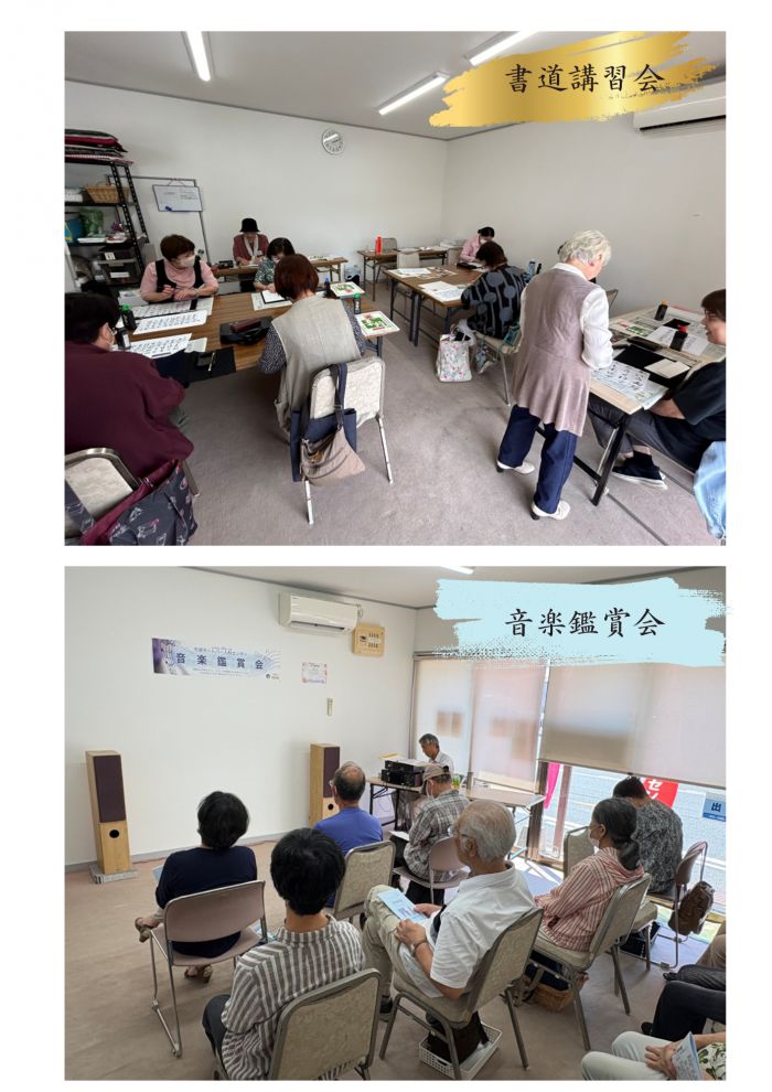 書道講習会や音楽鑑賞会、手芸の会などが開催されています。