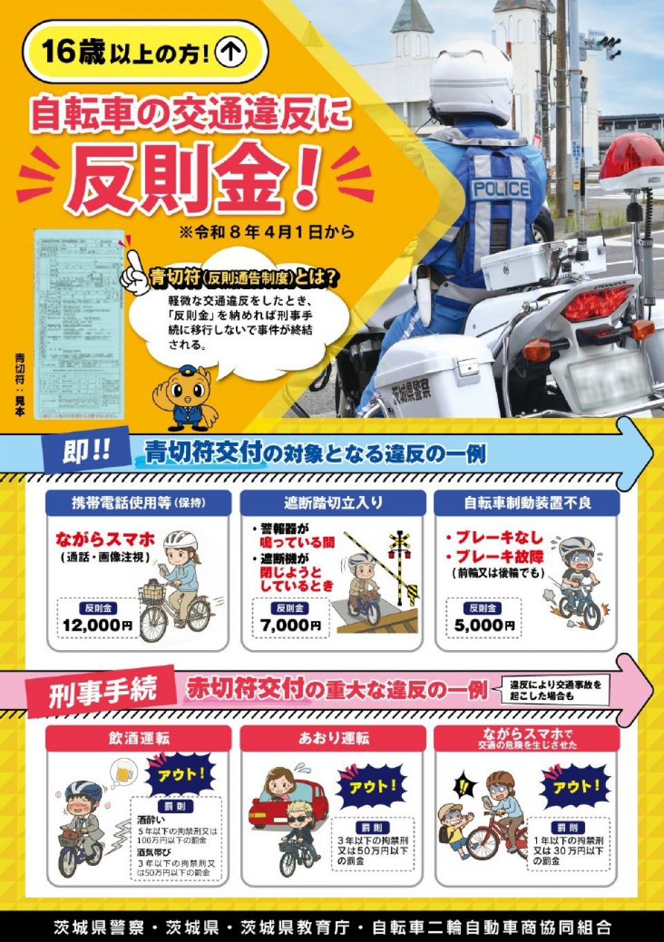 【安全だより】令和8年4月1日より自転車の交通違反に罰則が適用されます!