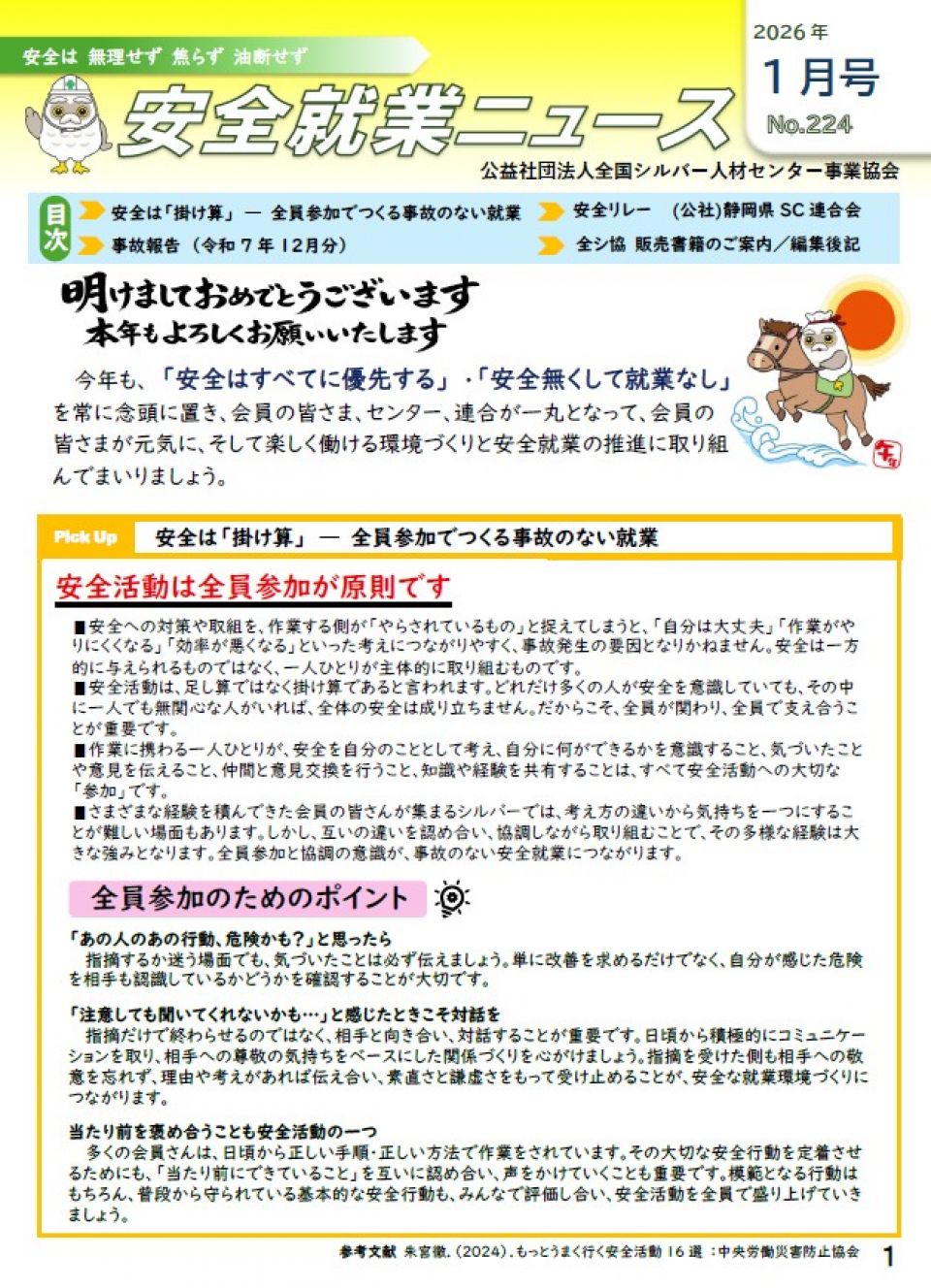 全国シルバー人材センター事業協会発行「安全就業ニュース」ぜひご一読ください。