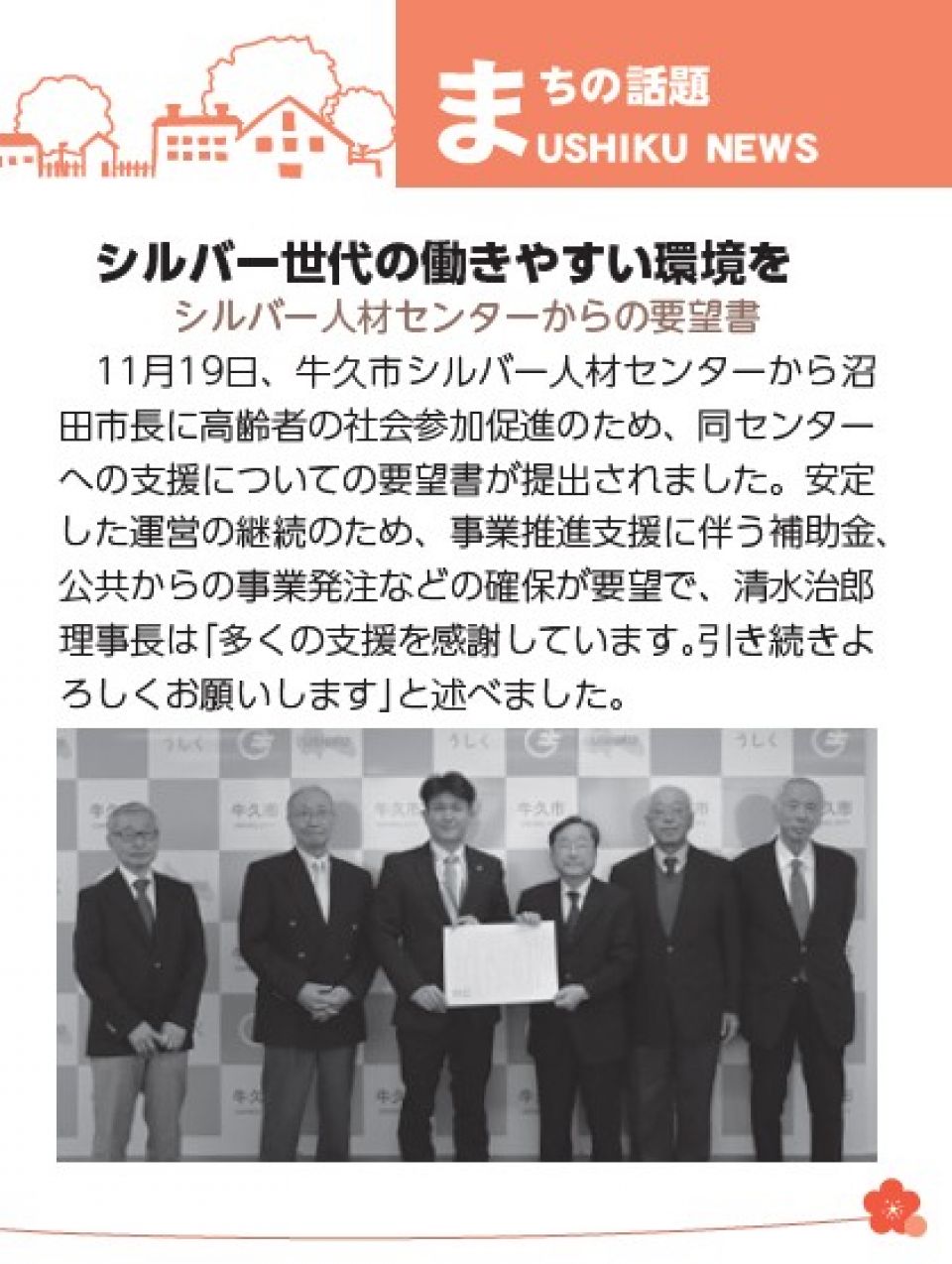 2026.1.5「広報うしく1月1日号」に当センターの取り組みが紹介されました(広報うしく16ページ)