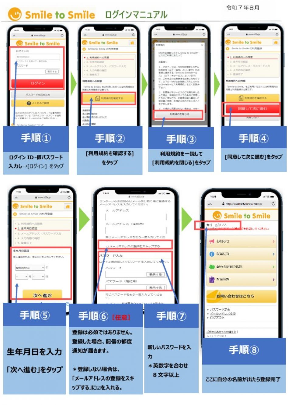 3.「Smile to Smile」へのログイン