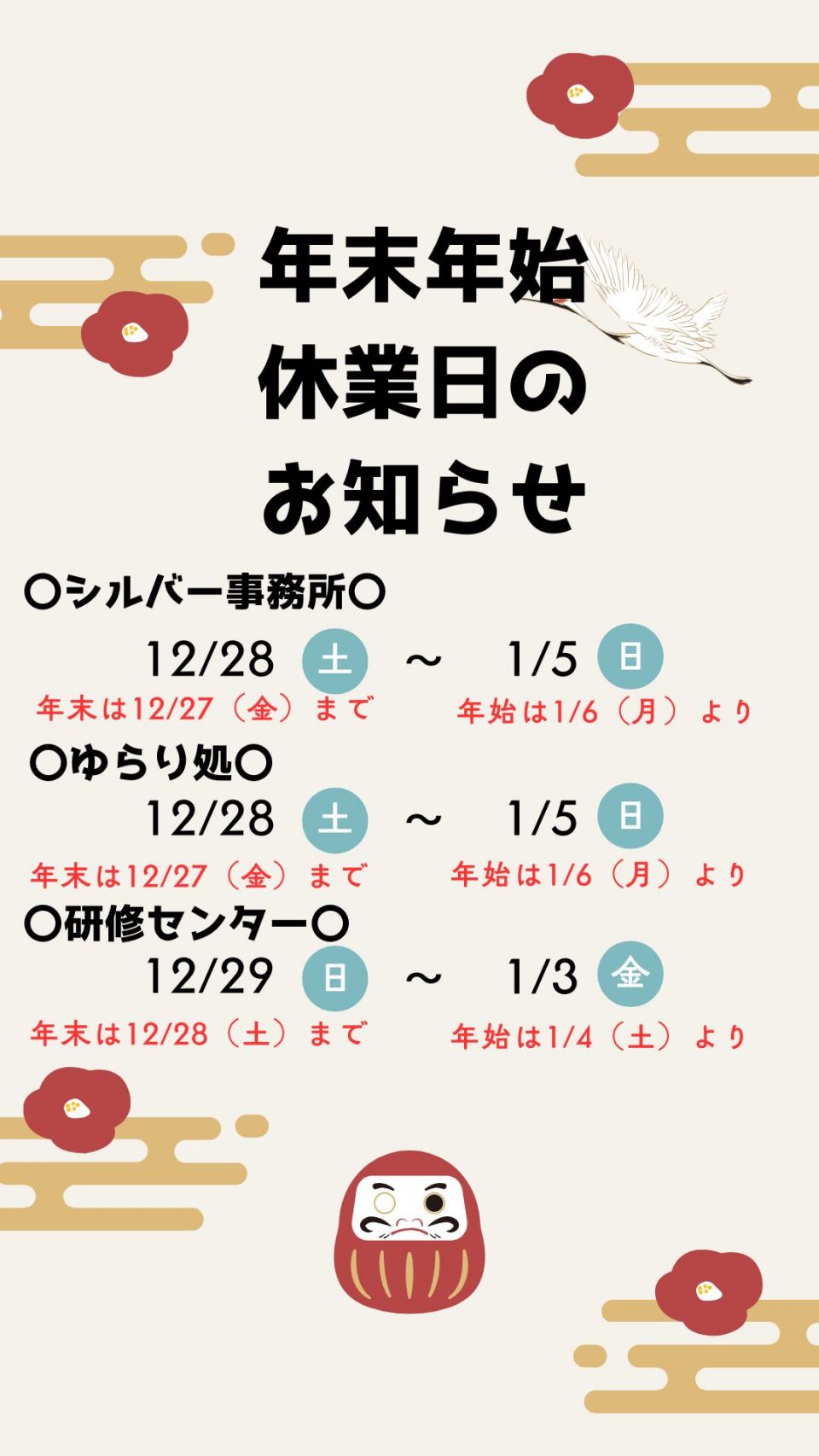 「会員及び発注者様へ」年末年始休業日のお知らせ
