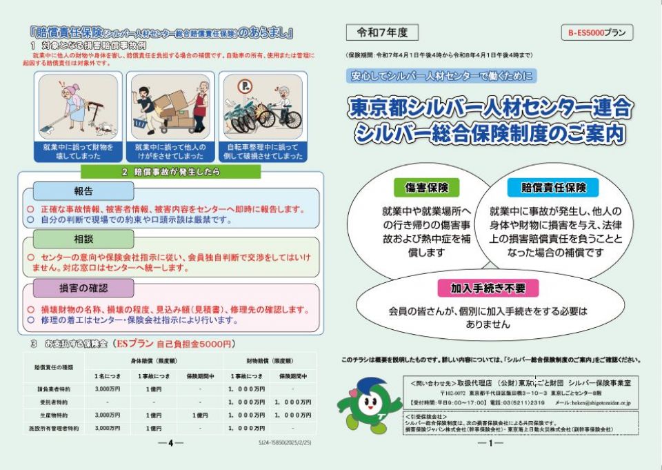 会員の就業中や就業先と自宅の往復時に万一の怪我などに対処するため、『シルバー総合保険』に加入しています。