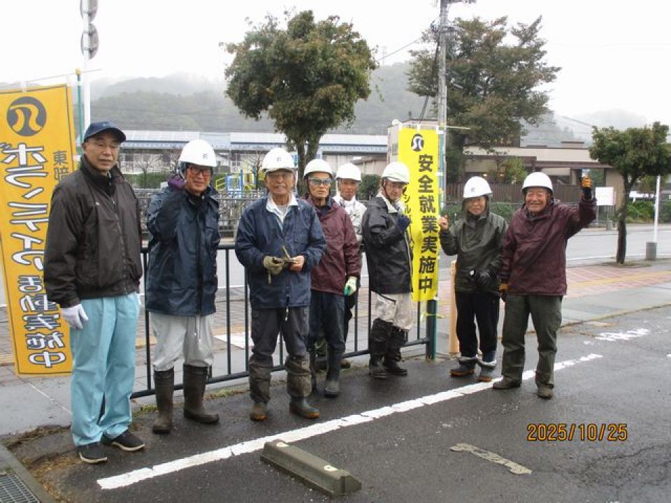 今回は、都留文大駅前の歩道の除草と清掃を行いました。当日は、悪天候の中、ご参加いただいた会員の方々、お疲れさまでした。