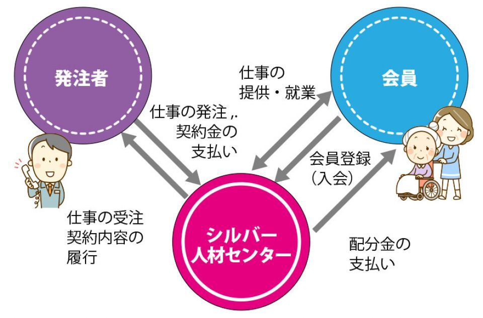 求人情報 求人の申込みは、お電話でも受付いたします 請負・委任の求人情報 2026.2.25更新 (毎週更新) シルバー派遣事業の求人情報 2026.1.21更新 (随時更新) シルバー人材センターの仕事の仕組み 1.請負・委任 ・センターから提供するお仕事のほとんどがこの形態です。 ・センター、発注者と会員の間に雇用関係はありません。 ・発注者から指揮命令を受けることなく、会員の裁量で仕事を完遂します。 ・万が一事故が発生したときは、シルバー保険(傷害、賠償責任)で対応します。 2.労働者派遣 ・センターの会員を対象に労働者派遣を行っています。 ・公益社団法人大阪府シルバー人材センター協議会と会員との間に雇用関係が生じます。 ・事業主(派遣先)から指揮命令を受け、仕事に従事します。 ・労災保険が適用されますが、社会保険(厚生年金保険及び健康保険)、雇用保険は適用されません。 PDFファイルをご覧になるには、Adobe Reader(アドビリーダー) が必要です。 アドビシステムズ社のサイトから最新版(無償)をダウンロードしてご利用ください。
