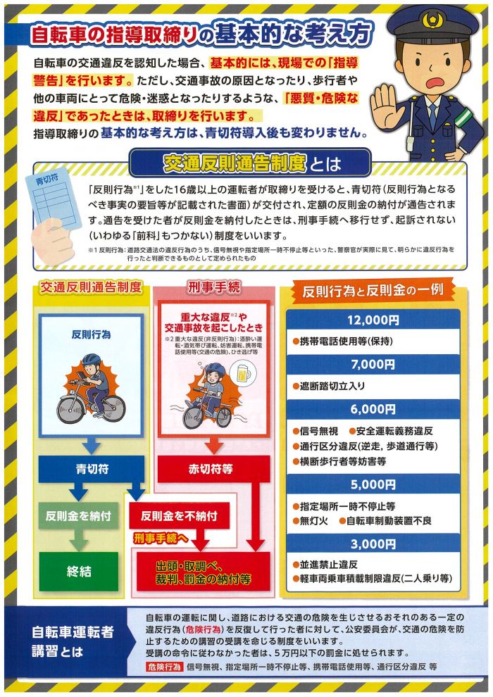 令和8年4月1日より自転車に青切符(交通反則通告制度)が適用されますのでご注意下さい!