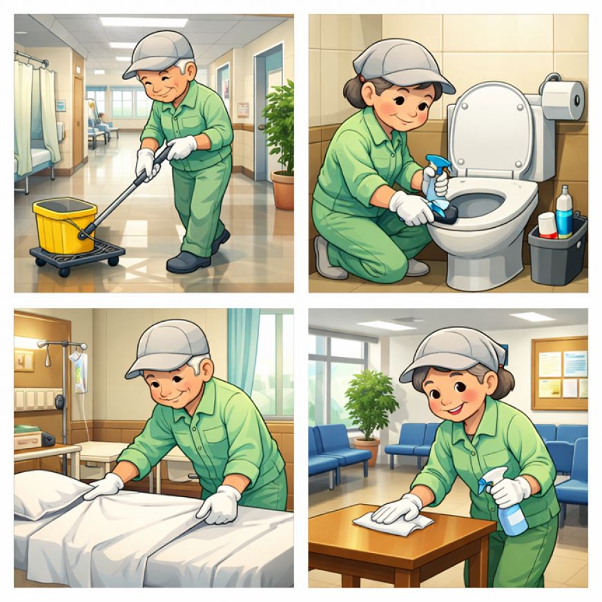 作業内容:病院内の通路、トイレ、病室、待合室等の清掃