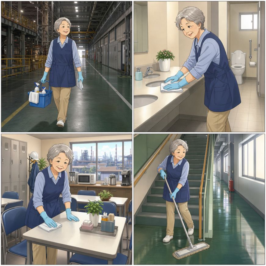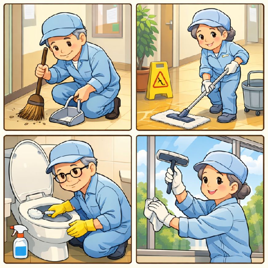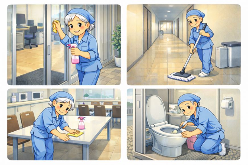 作業内容:事務所内清掃・トイレ清掃等作業