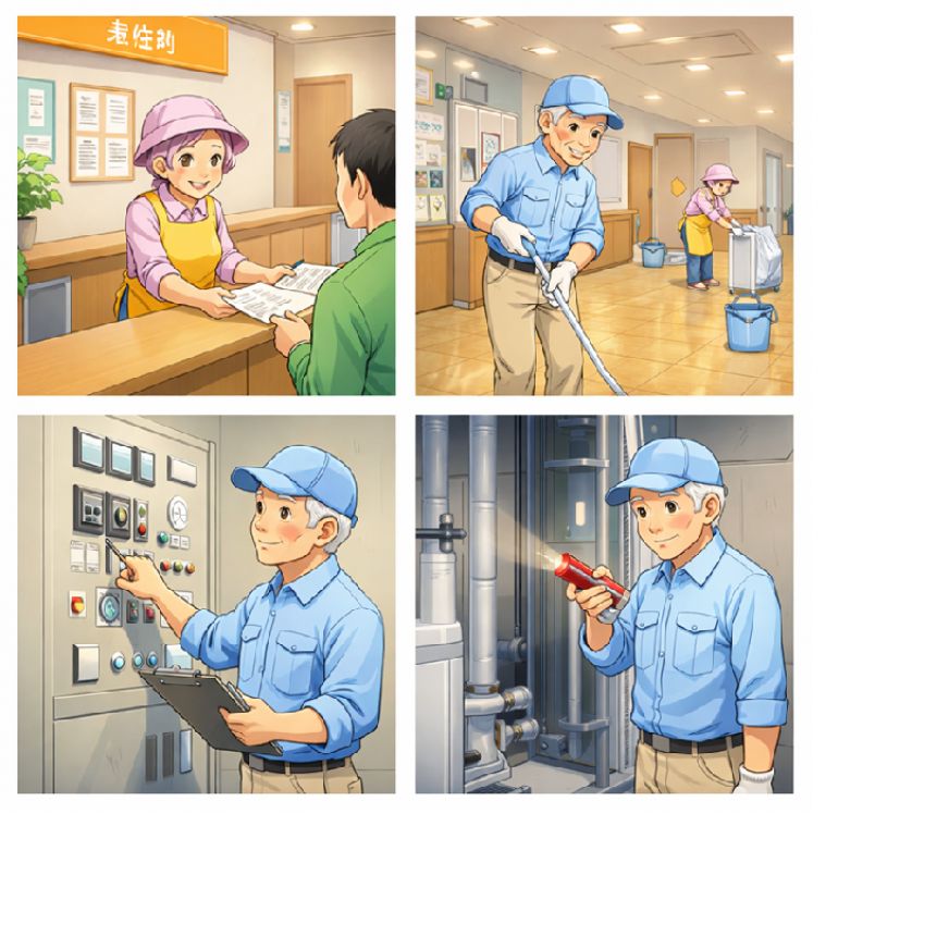 作業内容 : 建物管理(受付あり)、清掃