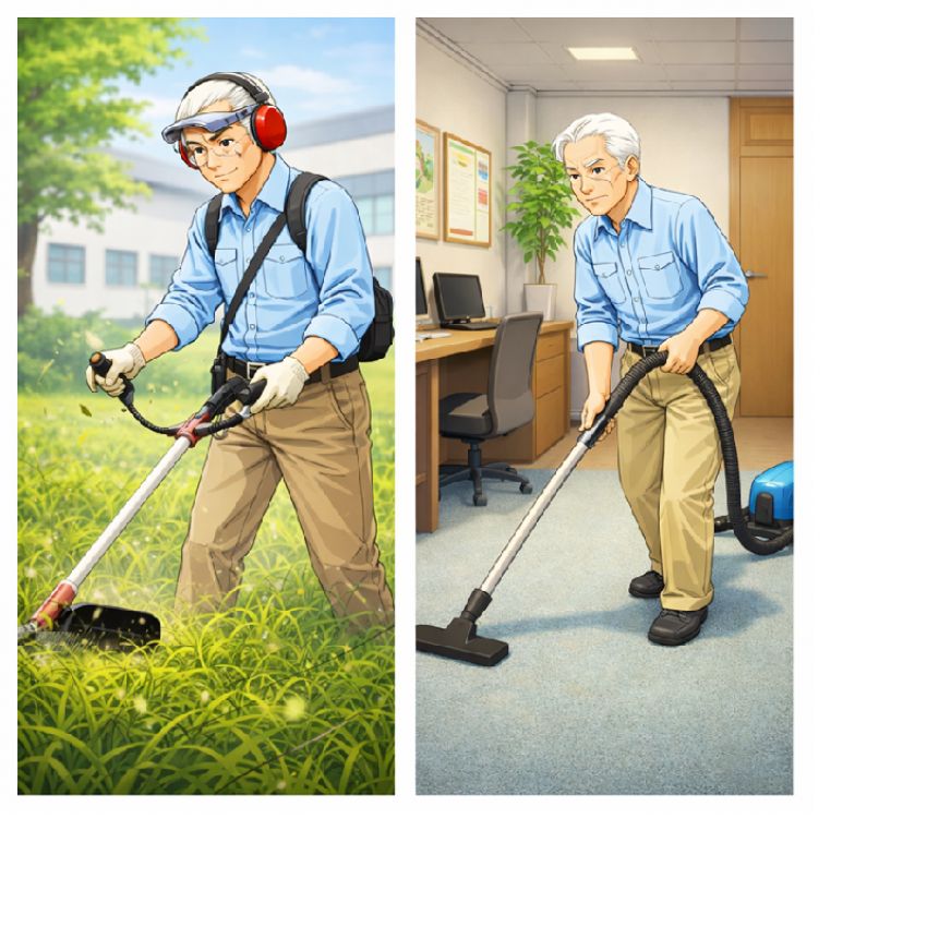 内 容:トイレ・廊下清掃、駐車場清掃、除草作業等