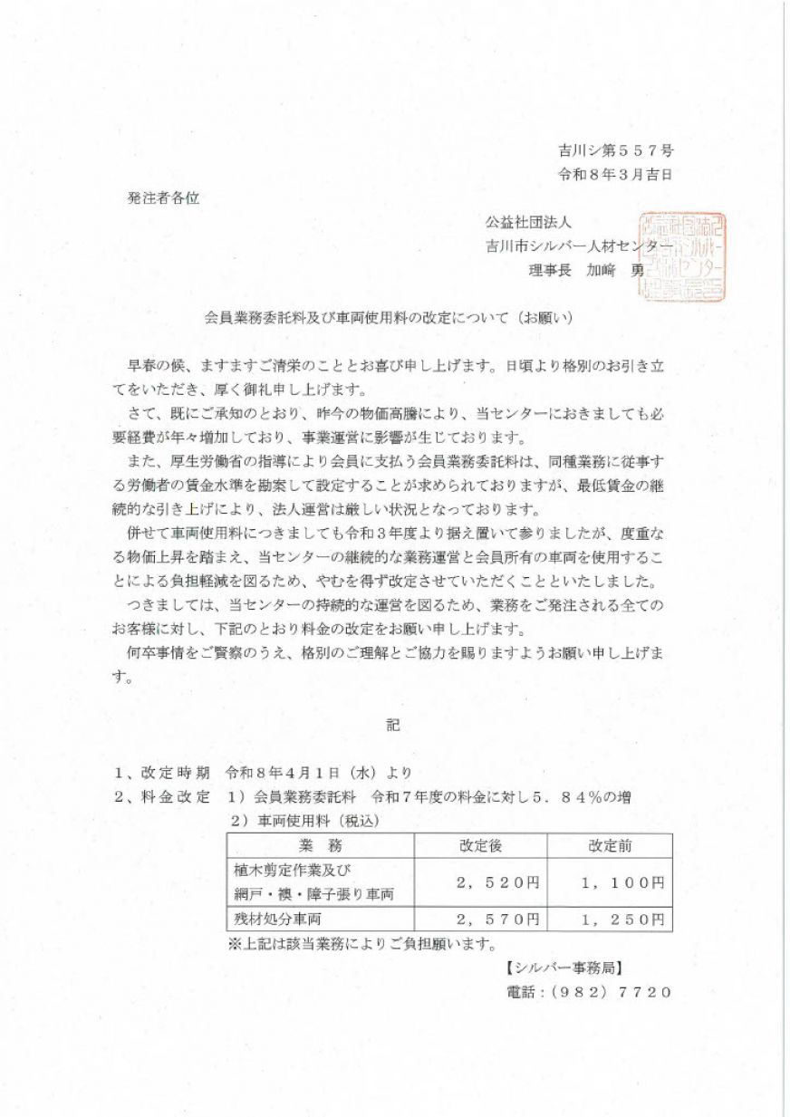 2026/3/30 :【重要】会員業務委託料及び車両使用料の改定について
