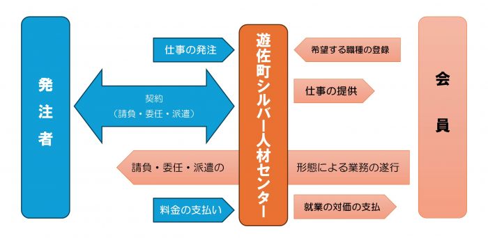 シルバー人材センターは、企業・家庭・官公庁などから業務を受注し、「臨時的かつ短期的または軽易な業務」を希望する高齢者(会員)に働く場として提供する公共団体です。