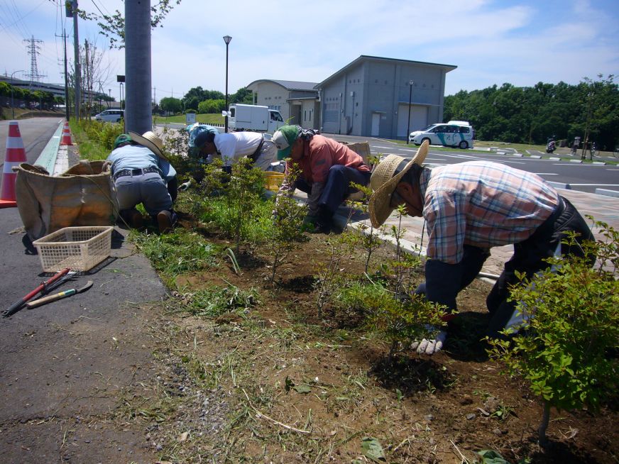 敷地内の植え込みなどの草取りをします。
